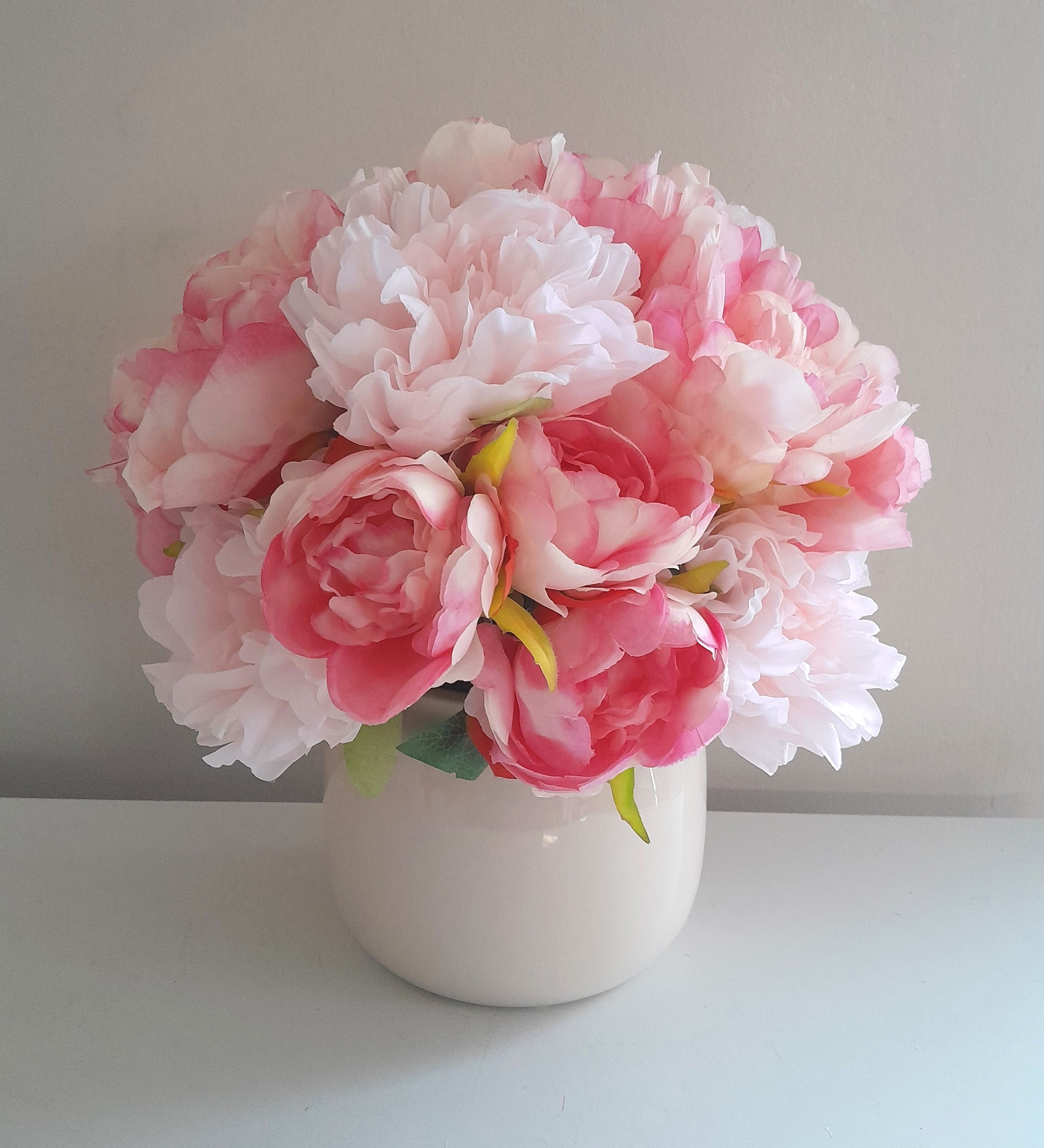 A lovely gift for a loved one, or yourself, our pink peony artificial flower arrangement in a ceramic vase can also be delivered gift-wrapped.