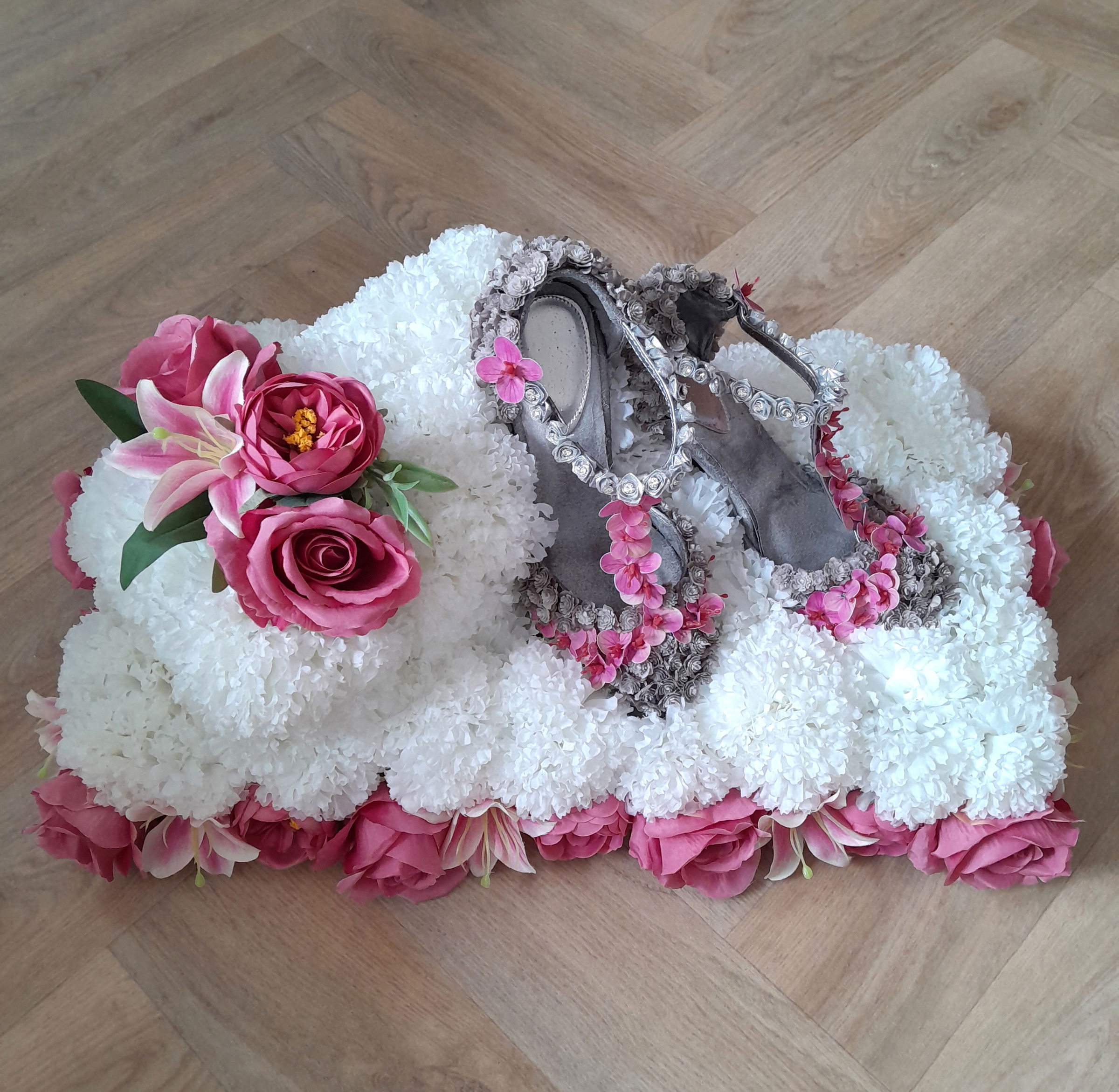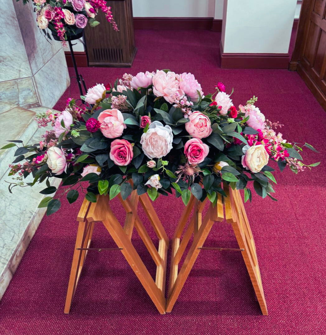 Our Grave Spray is a heartfelt tribute. Perfect for gravesites or memorials, this spray can be made in other colours and styles to suit.