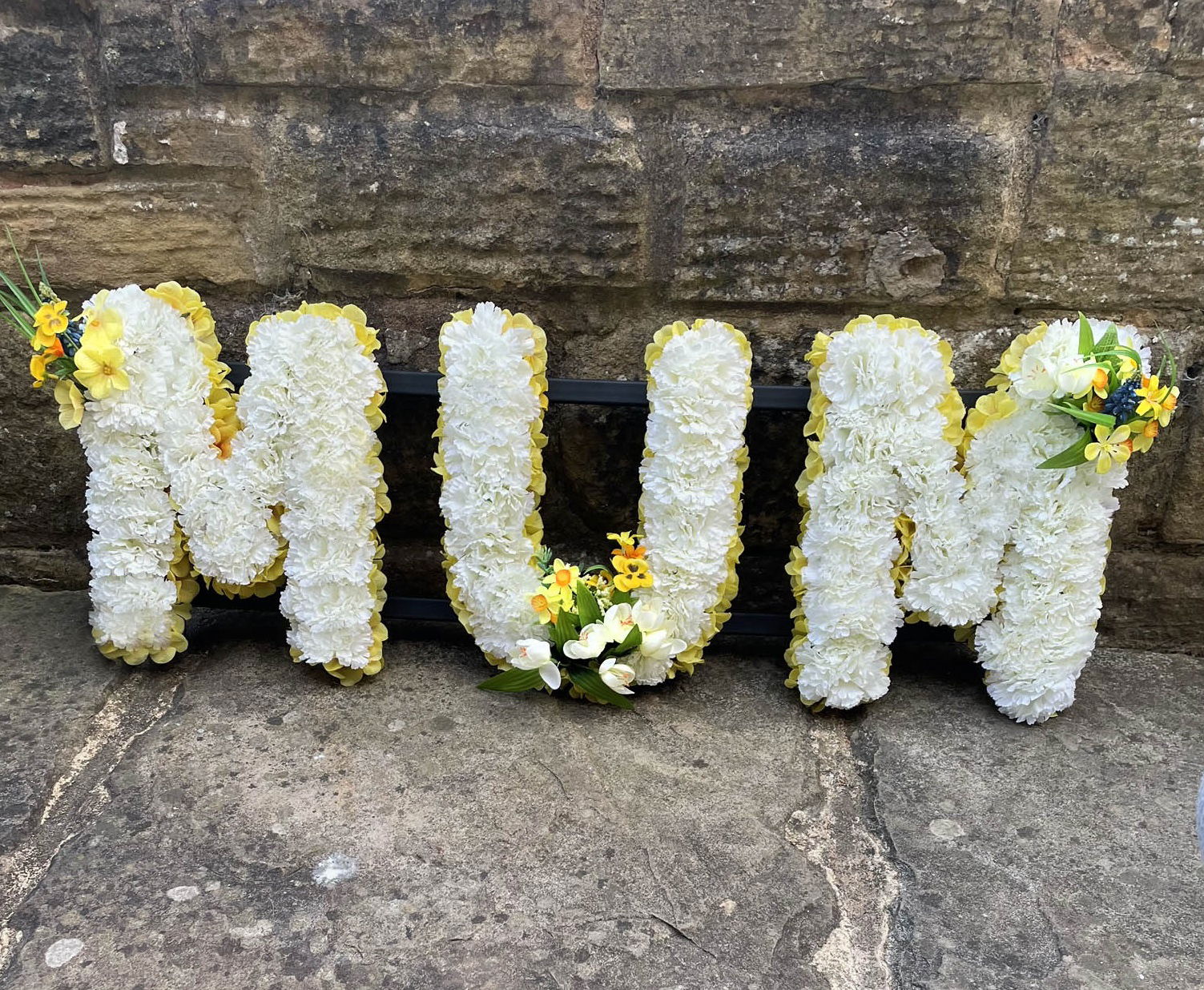 Funeral letter tributes starting at €40 a letter, any combination of letters available plus any colour to suit your loved one. Additional flowers can be added at request.